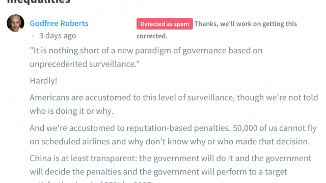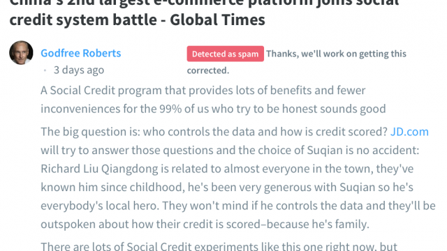 As a matter of fact, Godfree Roberts has indeed written an article on China’s Social Credit system which would be worth reposting on Off-Guardian.org in its own right ATL, as it’s rather long.