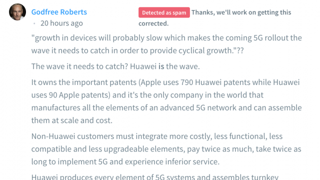 We’ve never taken any editorial position on 5G, though I get there are many questions being raised about it. We’d be happy to publish an analysis if anyone submits one.