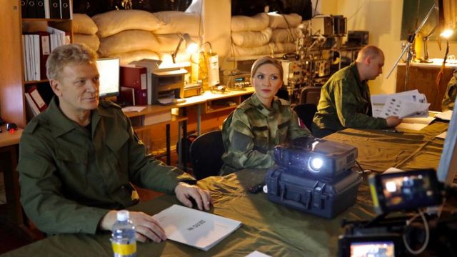 Still from “Alpha R”, a spy thriller being filmed in the Donetsk People’s Republic (see below gallery for more)