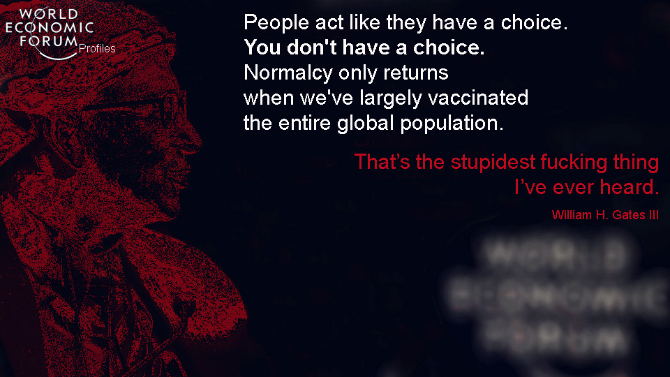 RichBill GatesOK, we’re now entering the 21st month of this global fascist coup. Dark Winter is approaching. They are coming for five-year-olds already and they will be coming for babies soon.