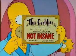 People don’t tend to be certified sane. Sanity is assumed to be a given rather than a pleasant surprise.
