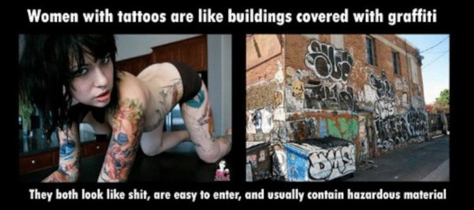 Only bellends low IQ who joined the army navy or prison Borstal got tats.