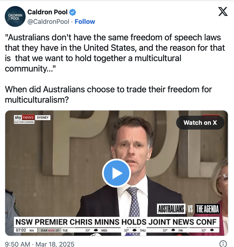 By the way, from another angle of this politician telling TV watchers about the new crackdown on free speech law (I saw the clip on another platform) the cameras showed him wearing a kippah (skullcap).