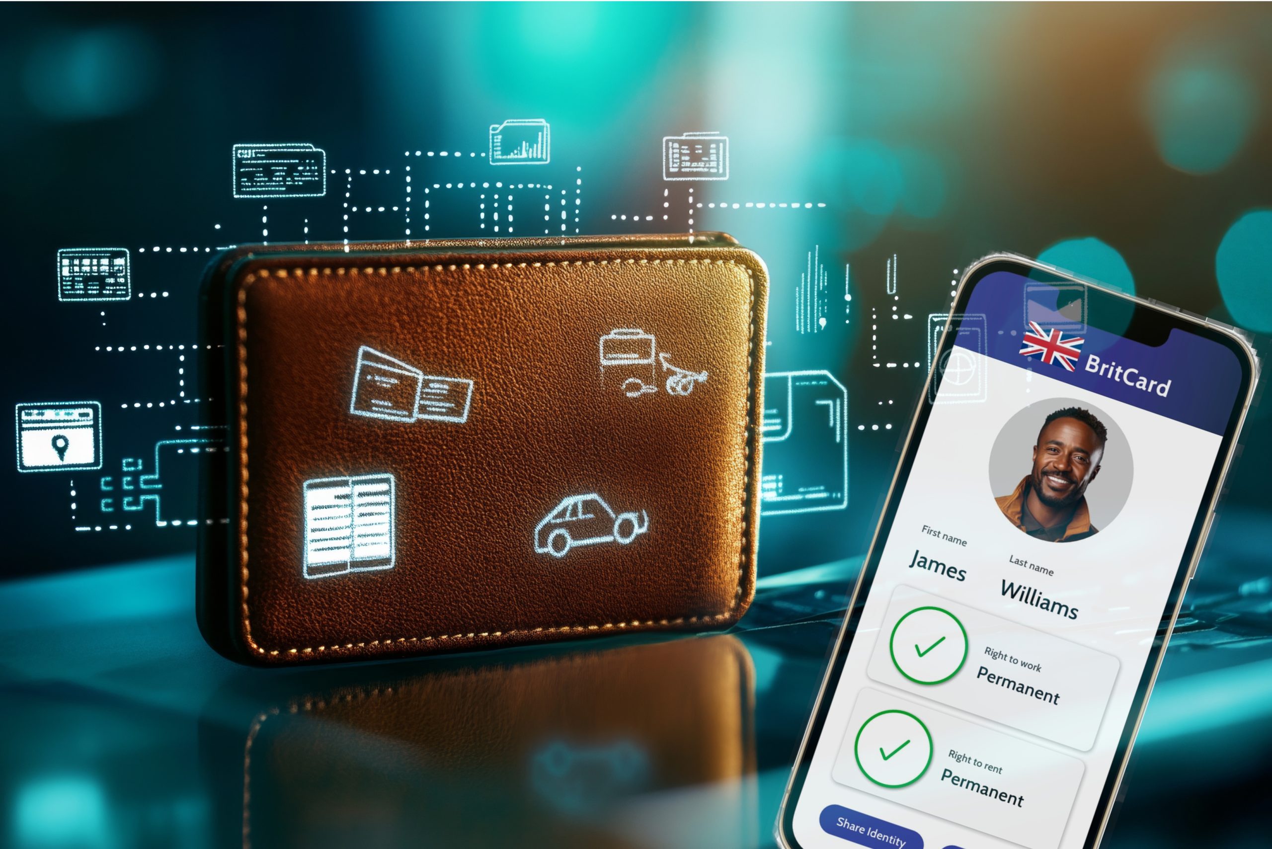 Over time, the same system used to support the right-to-work and right-to-rent credentials could underpin many other features, allowing users to access and use a wide range of data and attributes generated by interacting with the public sector. For instance, the digital driving license and associated data, a proof of age feature, and healthcare records could be accessed and shared at the user’s discretion via BritCard.