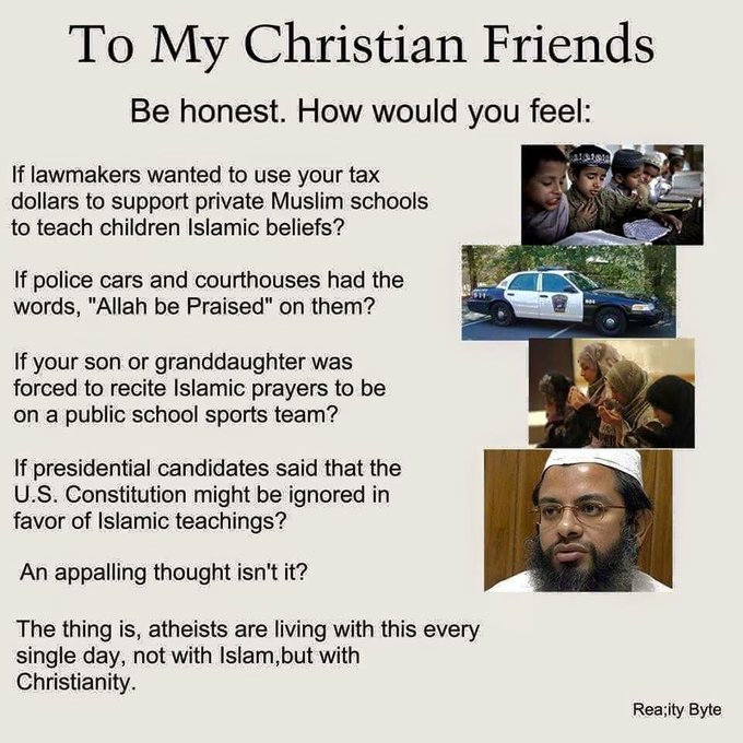 You’ll wear yourself out building so many straw men. Jesus doesn’t force anyone to follow Him. In a truly Christian nation, atheists have nothing to fear. That’s the difference between Christianity and Islam. In an Islamic state that adheres to the Koran and Hadiths, you would be in grave danger (as would I). In a Christian state that actually follows the Bible, you would be safe. Imagine a government that didn’t lie, or steal. That took care of the poor. That didn’t start wars. That didn’t allow banks to charge interest. That didn’t reward corruption. Isn’t that what we all want?