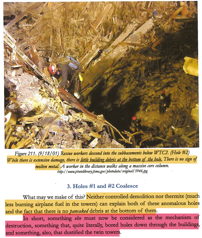 Given our present-day awareness that directed energy weapons (DEWs) actually do exist (did we know about them in 2001?) and that they can cut through steel, etc., I still tend towards Judy Wood’s theory.