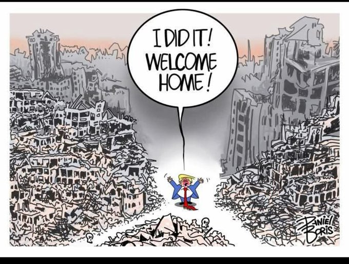 Trump invaded Iraq, Trump paid Hamas, Trump sent weapons to Israel to bomb Gaza, Trump started the war in Ukraine, Trump destroyed Libya, Trump assassinated Chile’s Allende, Trump assassinated JFK, and now Trump is going to start WWIII through his Police State in America shitting on the US Constitution all over.