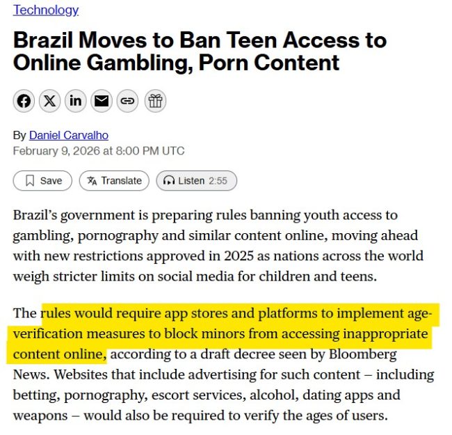 Even Brazil from BRICS has got in on the act. Won’t be long before the R, I and S join the party. The C may not bother since it probably knows who everyone online within its borders is already.