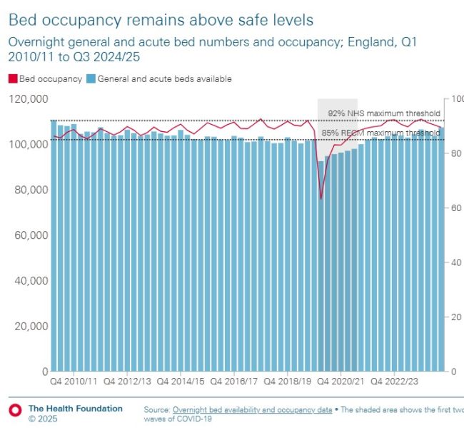 “as a result hospitals will experience capacity pressures at lower overall occupancy rates than would previously have been the case.”