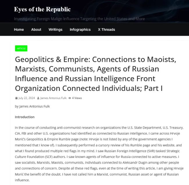 In July of 2024 this new network produced a hit piece on me openly and unashamedly full of lies and slander. My gut told me that this was clearly a security state operation.