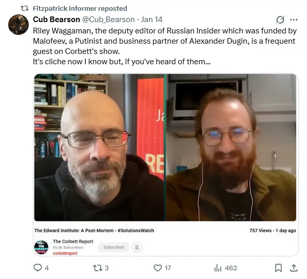 I had previously interviewed Jeff Nyquist because I thought there had been something to the Golitsyn theory. Given his relationship to this network, I’m increasingly coming to believe the Golitsyn theory was a Pentagon PSYOP. I found it strange that when I interviewed Nyquist right before Russia’s invasion of Ukraine in 2022, he knew the invasion was going to happen, he said they would invade a week or two later and they did. https://x.com/JRNyquist